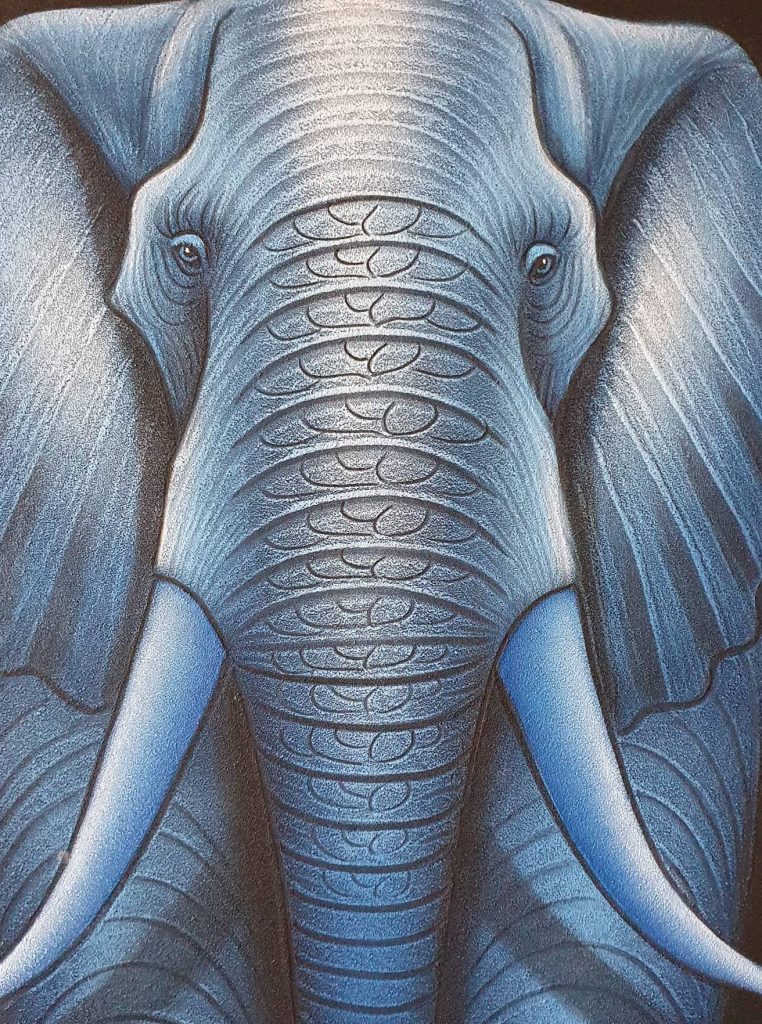Like many others, I had no-one to guide me, so I learnt avoidance. I already knew how to disappear into the walls so that I couldn’t be seen but I also learned how to disappear into story books, how to travel to different realms. My own way to describe it was to “go visit the Elephants”. Basically I would leave my body and go where I felt safe. On the open savannah with the elephants. I would walk in their footsteps. I have a guide, Emily, who is a big, blue, matriachal elephant. I even have a painting of her on my wall. She makes me feel safe.