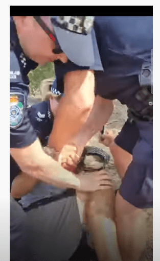 Even if these things are of no interest to you, I cannot believe that you could sit by and allow, on our very own doorstep, to see police (and without name badges and not willing to give name and badge number) abusing an elderly woman, throwing her to the ground, wrenching her arms behind her back as she cries in pain and shock face down in the dirt. She was still outside the area that TMR have fenced off. She is an older woman and no threat.